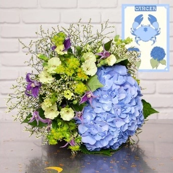 Hortensia azul: La flor tótem de Cáncer, el hortensia azul representa las olas del mar y la abundancia del verano.