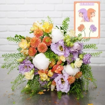 Para capturar su esencia única y despertar su alegría de vivir, apuesta por flores de tonos vivos y contrastantes, símbolo de su espíritu juguetón y su entusiasmo desbordante. Un ramo de flores con matices brillantes y formas ligeras conquistará a este signo espontáneo y siempre ávido de nuevas experiencias.